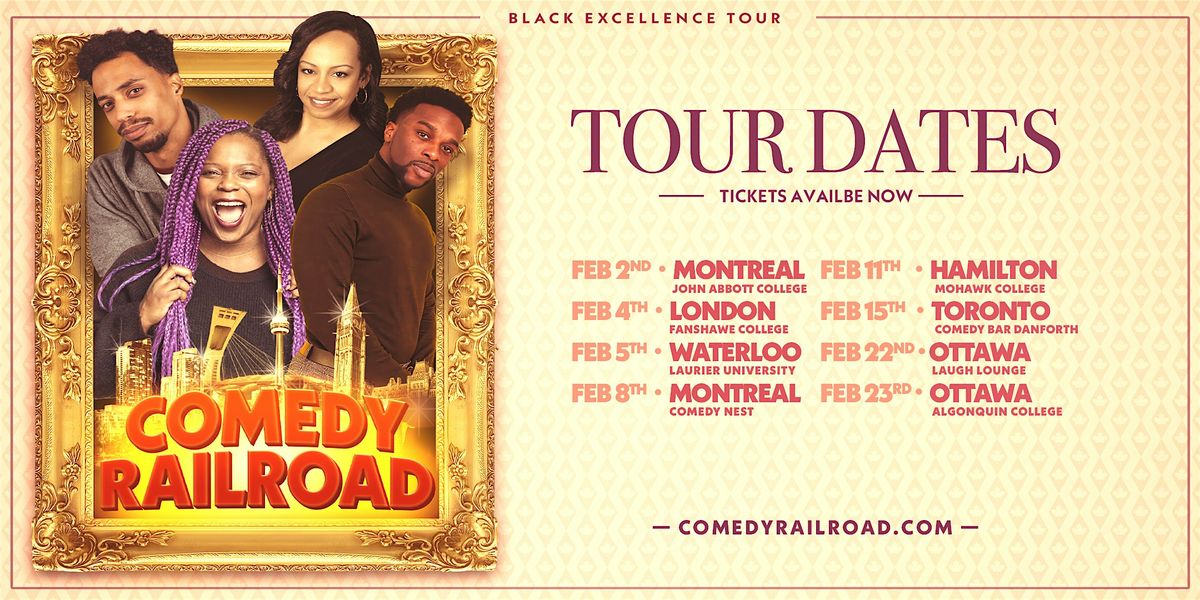 The Underground Comedy Railroad (UCR) is a groundbreaking all-black comedy tour, founded in 2012 by Rodney Ramsey and Daniel Woodrow. As Canada's first tour of its kind, UCR has been pioneering the way for Black Canadian comedians to share their unique humor and stories with a wider audience. Each February, to coincide with Black History Month, we embark on a nationwide journey, bringing laughter and thought-provoking entertainment to stages across Canada.