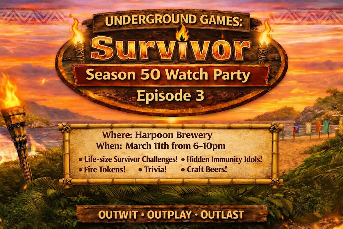 Join Underground Games for an unforgettable watch party as we continue this iconic season of Survivor with fellow fans, cold drinks, and immersive games inspired by the show we all love.