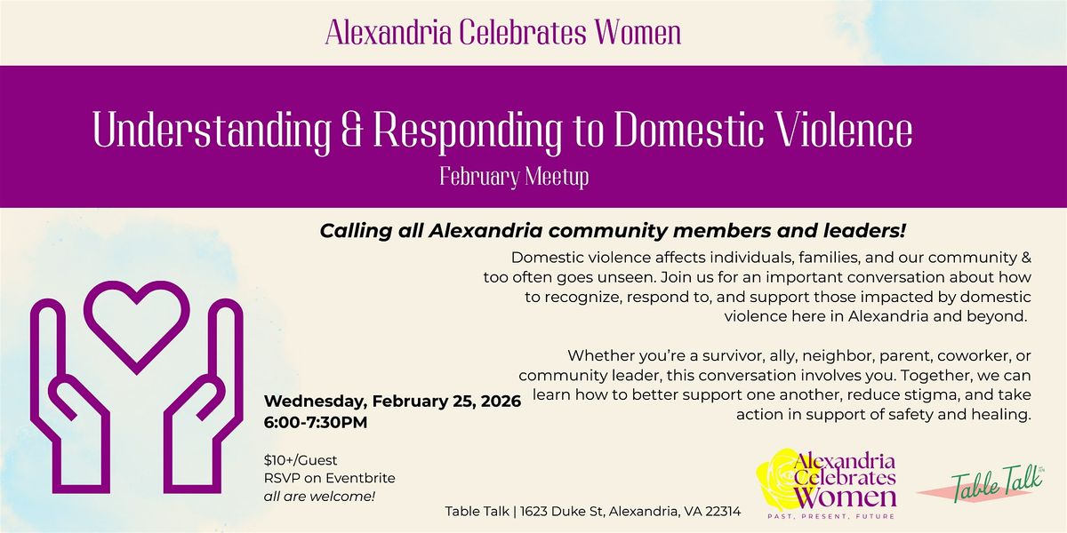 Domestic violence affects individuals, families, and our community & too often goes unseen. Join us for an important conversation about how to recognize, respond to, and support those impacted by domestic violence here in Alexandria and beyond.