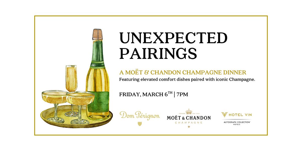 Join us at Hotel Vin for a Moët & Chandon Champagne Dinner that brings together elevated comfort dishes and iconic Champagne pairings. This multi-course experience features thoughtful, unexpected combinations—from lobster mac & cheese to chicken & waffles—each paired with Moët & Chandon and Dom Pérignon selections.