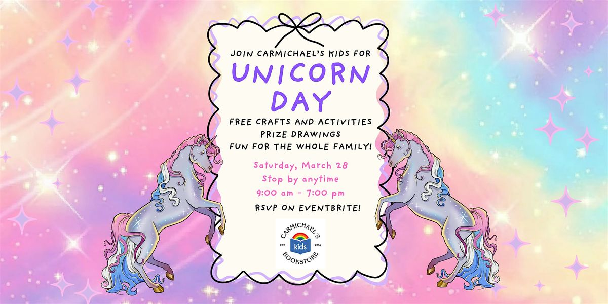 Join Carmichael's Kids for Unicorn Day on Saturday, March 28. Stop by anytime between 9am-7pm for free crafts, games, and giveaways.