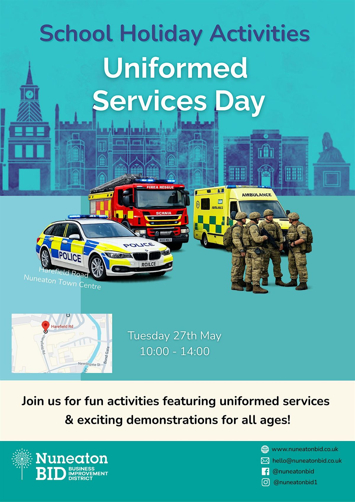 Uniformed Services Day in the Town Centre will feature Ambulance, Police, Fire, and Army units, offering interactive displays, demonstrationAbout this Event