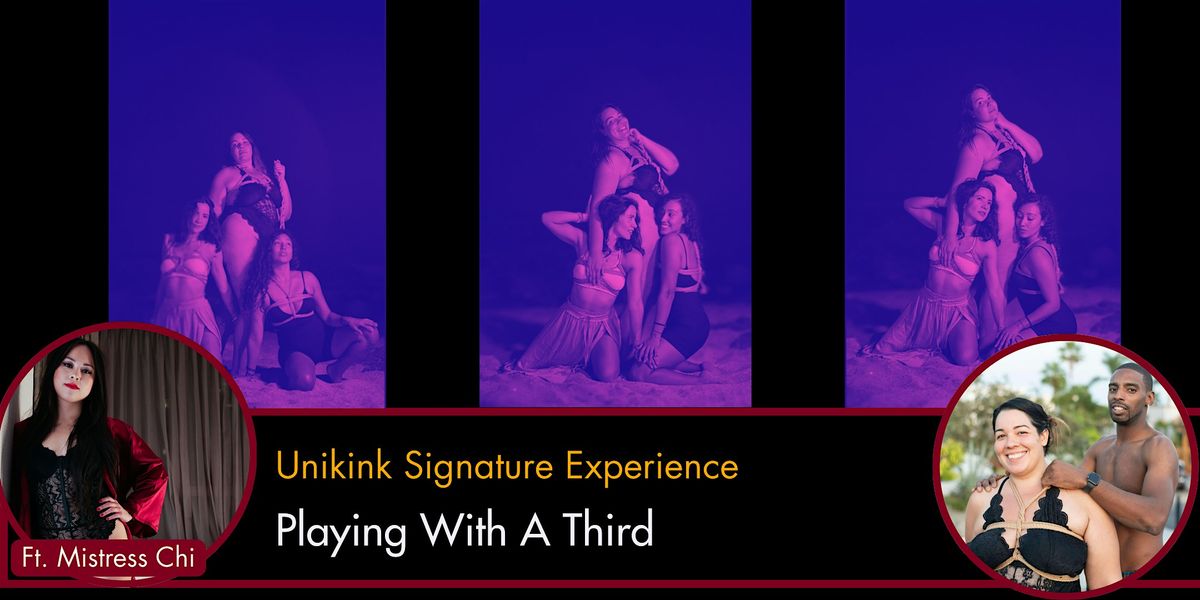 “Pl@ying with a Third” is a Unikink Signature Event designed for couples, partnerships, and curious individuals who want to explore adding another dynamic — ethically, consciously, and with structure. Whether you are brand new to triad exploration or refining an existing dynamic, this experience offers grounded tools and live demonstrations to help you move with clarity and confidence.