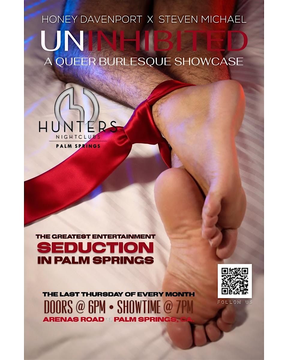 Hey There, Palm Springs! We are bringing burlesque to the Coachella Valley! Direct from the creative team driven by superstar Honey Davenport and photographer Steven Michael comes their exciting new endeavor UNINHIBITED every last Thursday of the month, with next show on 3/26. This queer burlesque showcase will feature vibrant stripteases, hilarious comedy, choreographed productions and specialty acts unlike no other! These exciting showcases will be happening at Hunters Nightclub on Arenas Road. Come grab your seat early! Don’t miss out… ⏱️ EVENT BEGINS AT 6PM 🎬 SHOWCASE STARTS AT 7PM 🫧 PERFORMANCES ALL EVENING 🍸 SEXY BARTENDERS POURING 😈 UNIQUE GO-GO ACTS 🪡 FIERCE FASHION REQUIRED “LEAVE YOUR INHIBITIONS AT THE DOOR” — SHOWGIRLS ❌⭕️❌⭕️ YOUR HOSTS, ⛓️ @honeydavenportofficial ⛓️ @stevenmichael_photography 📍 @hunterspalmsprings #coachella #palmsprings #travelgram #visitcalifornia #burlesque #entertainment #travel #lgbtq