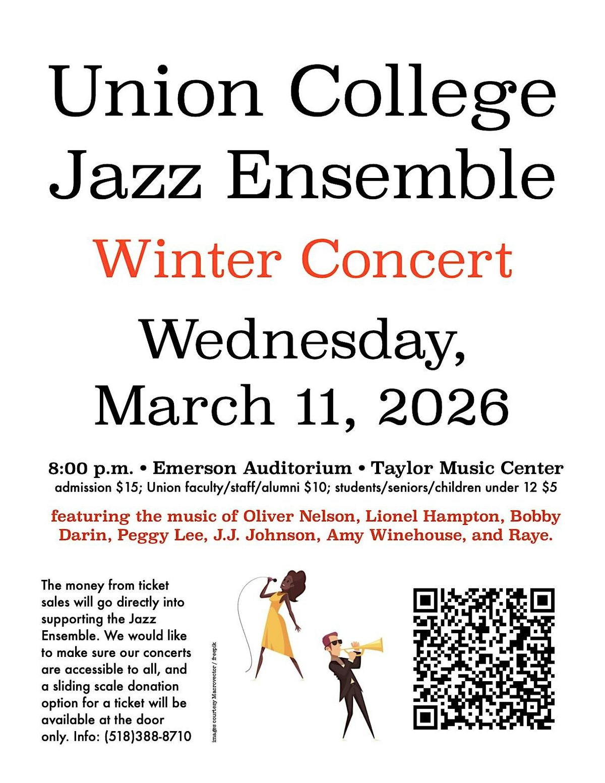 The Union College Jazz Ensemble, directed by Prof. Tim Olsen, presents a program featuring instrumental and vocal jazz and pop classics.