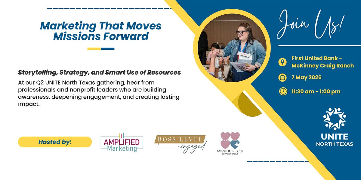 Reaching the right audience and telling your story effectively is one of the biggest challenges nonprofit leaders face. At our Q2 UNITE North Texas gathering, you’ll hear from seasoned marketing professionals and nonprofit leaders who are finding ways to increase awareness, deepen engagement, and build long-term sustainability.