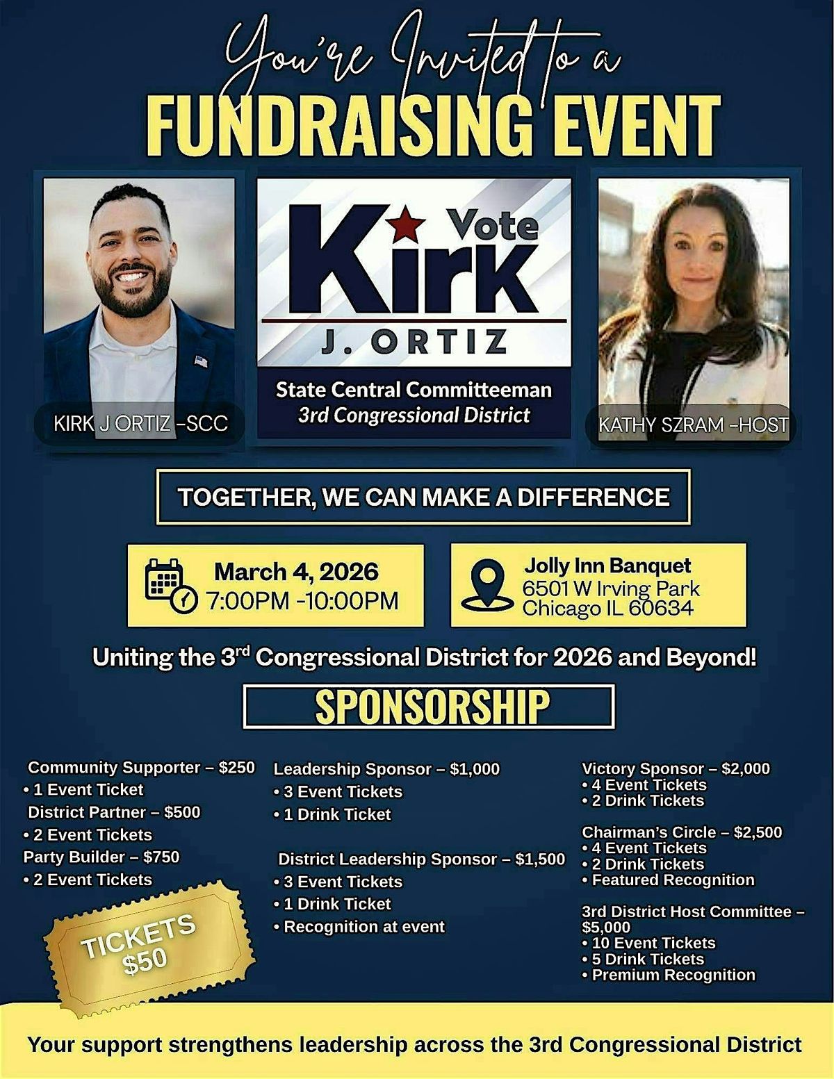 Hosted by Kathy Szram, this special evening brings together leaders and supporters from across the 3rd Congressional District in support of Kirk J. Ortiz for State Central Committeeman.