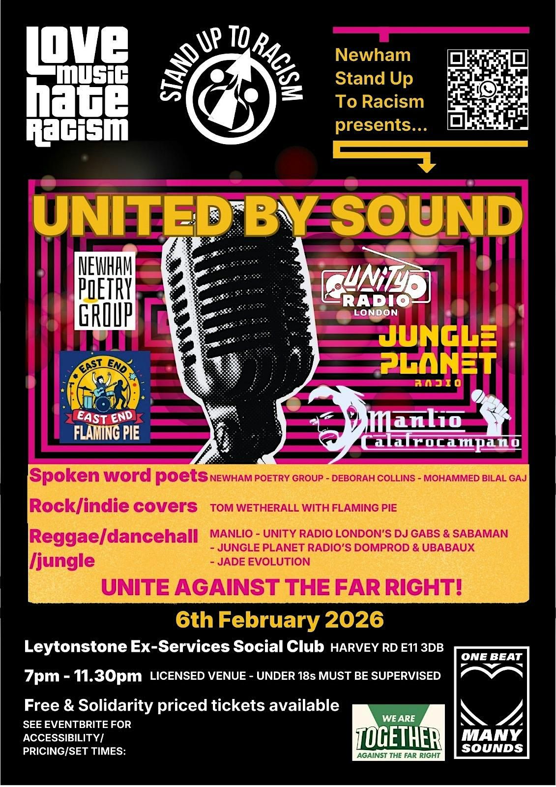 Presented by Newham Stand Up To Racism, this grassroots, community-led event celebrates creativity, diversity and solidarity in East London. Through poetry, spoken word and music, we unite against the far right and stand for inclusion, compassion and community.