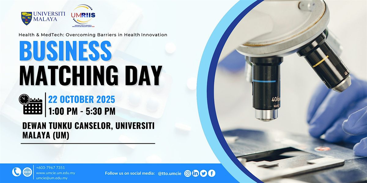 The UM Business Matching Day 2025, held in conjunction with the UM Research, Innovation, and Industry Summit (UMRIIS) 2025 on 22–23 October 2025, is a strategic platform designed to bridge the gap between academia and industry. Organized by the UM Centre of Innovation and Enterprise (UMCIE), the event focuses on connecting Universiti Malaya’s ready-to-commercialize inventions with industry players, startups, and investors.