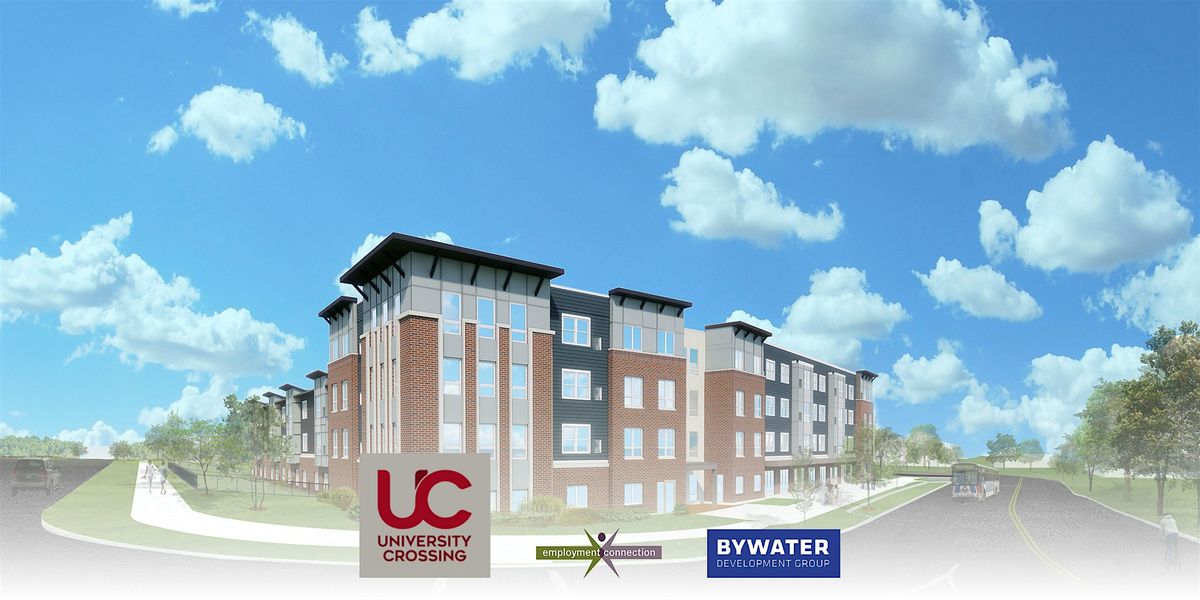 Employment Connection and Bywater Development Group invite you to the groundbreaking ceremony for University Crossing, a transit-oriented mixed-use development at the North Hanley Transit Center. The $20 million development includes 60 new mixed-income residential units along with commercial spaces and a new Employment Connection satellite office to better serve North County residents.
