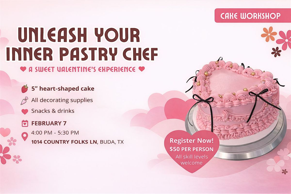 Hands-on Valentine’s cake decorating workshop! Create a 5” heart cake with expert guidance. All skill levels welcome.