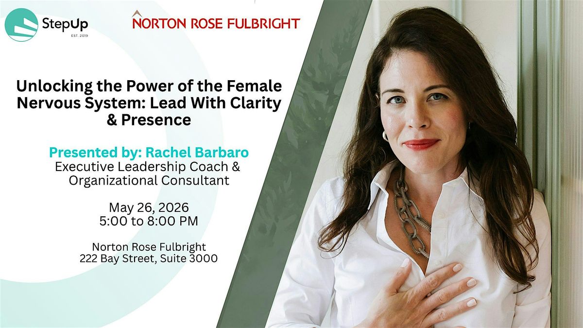 StepUp is pleased to announce its next leadership development event, Unlocking the Power of the Female Nervous System: Lead with Clarity and Presence, sponsored by Norton Rose Fulbright and delivered by Rachel Barbaro, an executive leadership coach and organizational consultant. With over a decade of senior leadership experience, Rachel brings a deep understanding of the pressures leaders face, from high-stakes decision-making to the physiological toll of chronic stress.