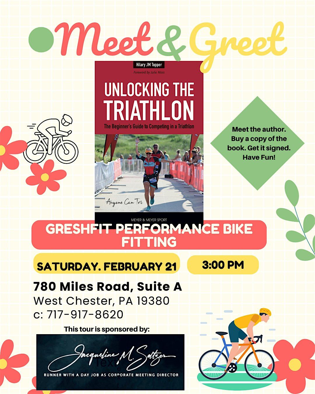 Welcome to Unlocking The Triathlon Meet & Greet in West Chester, PA! Join us at GreshFit Performance Bike Fitting on February 21, 2026 at 3:00 PM (Eastern Time) for an exciting event. Meet the author, buy a copy of the book, get it signed, and have some fun!