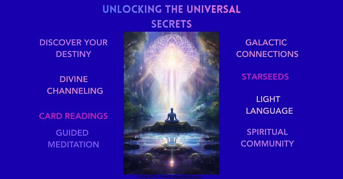 This workshop will open a pathway to the highest realms which will allow you to venture further than you have ever gone before. It will provide you keys to unlock the secrets of the universe which have been whispering to you. Allow yourself to solve the mysteries that have been eluding you and fulfill your destiny.