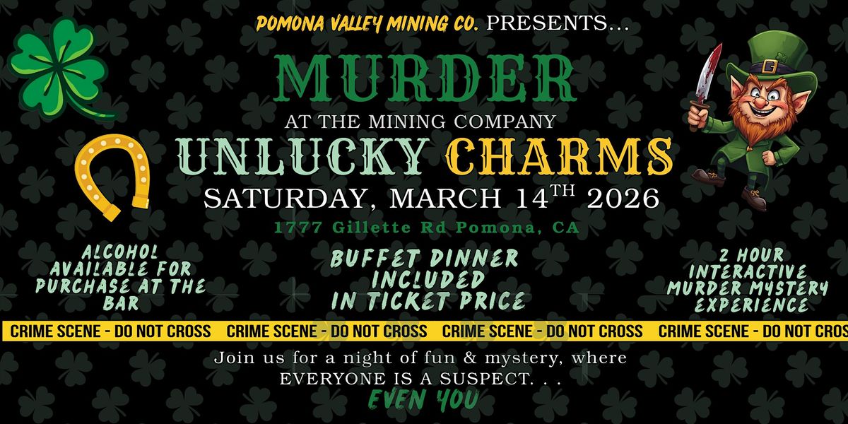 You are cordially invited to an Irish wake where sorrow, secrets, and suspicion fill the room. What begins as a traditional farewell quickly turns deadly when it is revealed that the deceased may not have met their end by luck alone. In Unlucky Charms, guests will drink, dine, and dig into a twisted tale of betrayal, grudges, and long-buried family secrets.