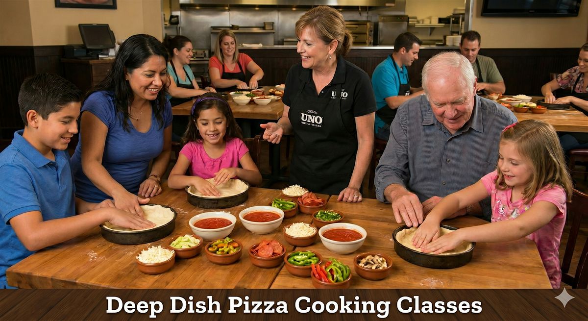 Come join us for a fun and delicious experience hosted at UNO Pizzeria and Grill! Our Deep Dish Pizza Classes will teach you the secrets of making the famous Chicago-style pizza. Get hands-on experience with our expert chefs and learn the art of creating the perfect crust, layering the toppings, and baking to perfection. Whether you're a pizza enthusiast or just looking for a unique experience, this class is perfect for all skill levels. Don't miss out on this opportunity to become a deep dish pizza pro!