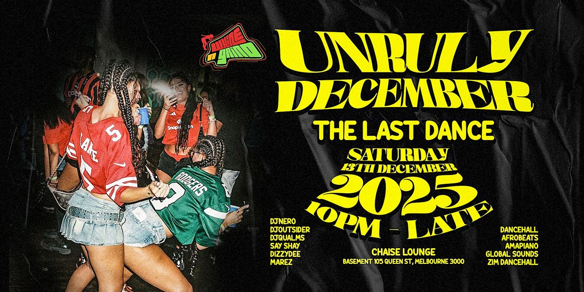 UNRULY DECEMBER: The Last Dance. A night of Dancehall, Afrobeats & Amapiano as Whine N Grind closes the year in style. Don’t miss it.About this Event
