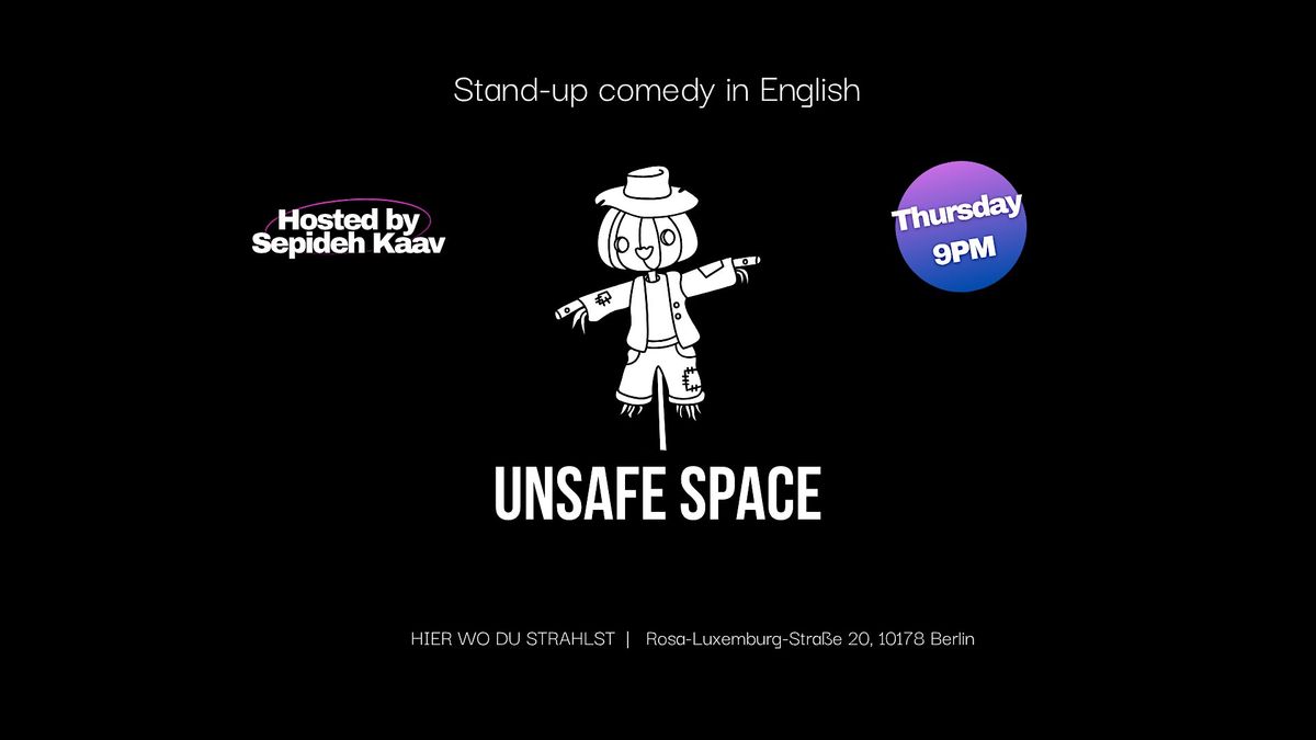 Unsafe Space is a one-hour stand-up comedy show hosted by Sepideh Kaav, featuring 2–3 of Berlin’s best comedians at one of Mitte’s coolest bars, HIER WO DU STRAHLST. It’s an intimate show where no topic is off limits, in fact, that’s part of the fun. You’ll get to know the host and the other guests, so don’t hesitate to come on your own, especially if you’re new in town. It’s a great place to mingle, have a drink, and make friends through laughter, alcohol, and some trauma bonding.