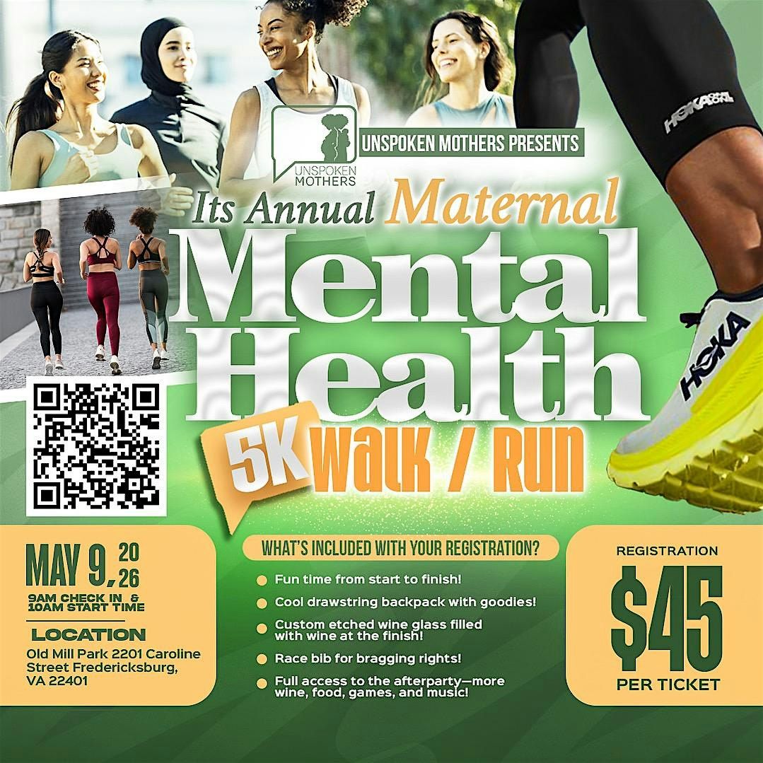 Unspoken Mothers presents our Annual Maternal Mental Health 5K Walk/Run, a day to spread awareness, and support maternal mental health!About this Event