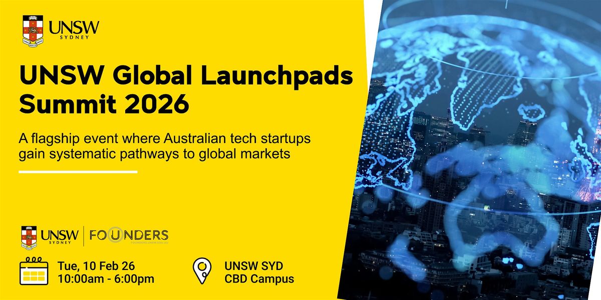 On 10 February 2026, UNSW is bringing startup founders together with global investors and international government partners across 10 dedicated country rooms—USA, China, India, Germany, France, Singapore, UAE, Japan, Korea, UK and Indonesia. This UNSW Global Launchpads is a 1-day summit where tech startups gain concrete pathways to global markets.