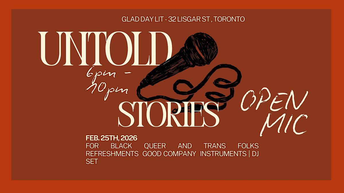UNTOLD Stories is an intimate, living room style open mic created by and for Black members of the queer and trans community. This is a space to share, witness, and listen to each others stories within a community that sees us and wants to listen.