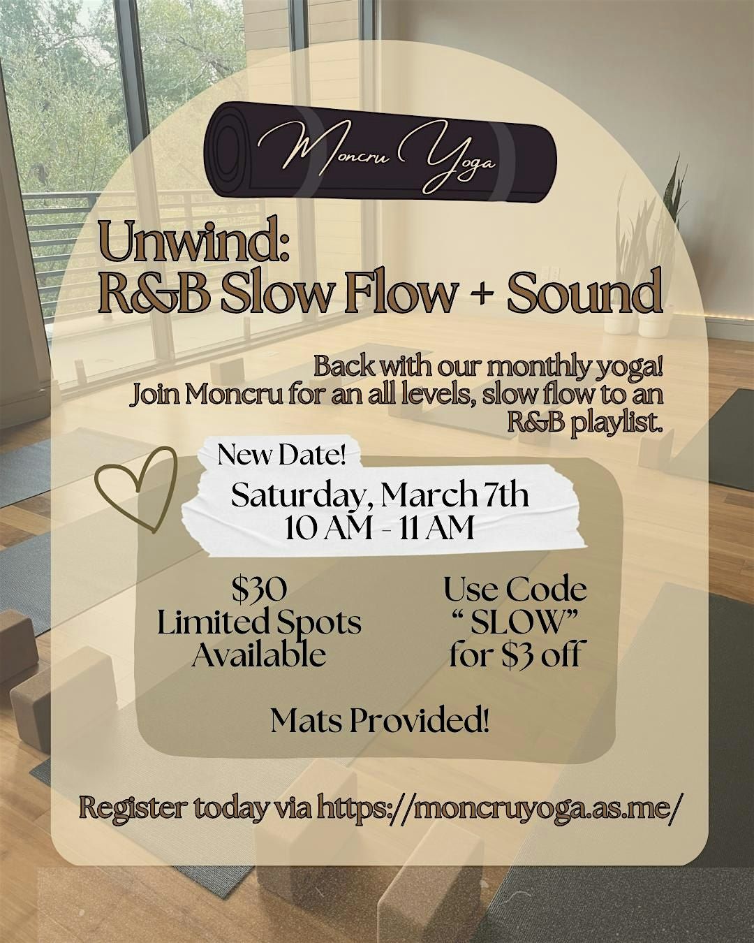 Join Moncru for an all levels, slow flow to an R&B playlist. Accessible for first timers!
