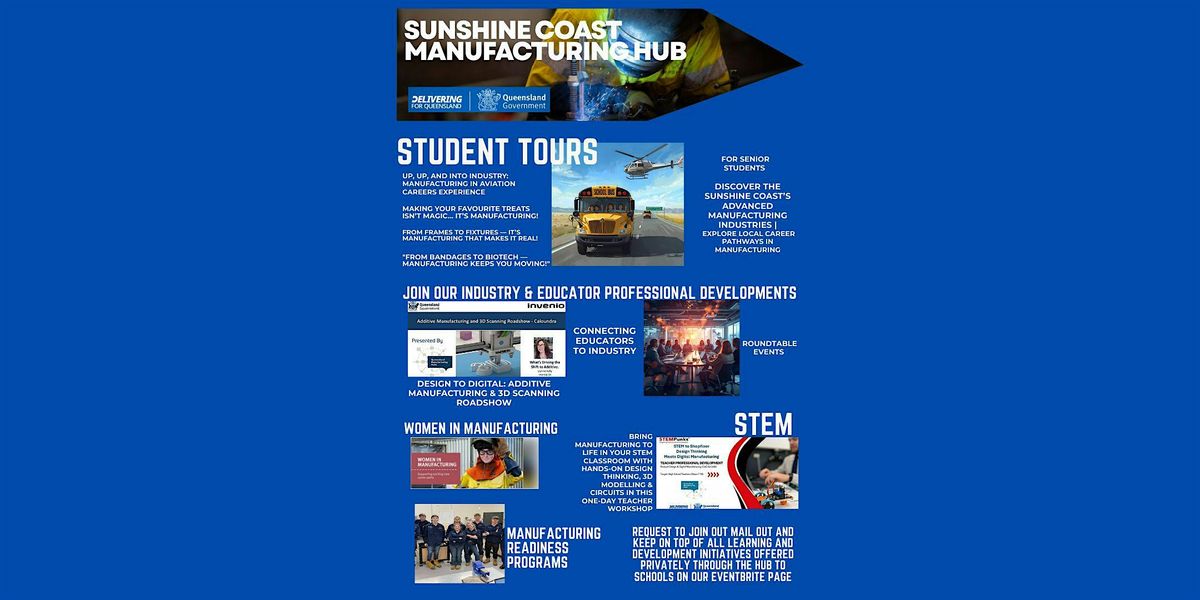 FREE TOUR - Sponsored by Sunshine Coast Manufacturing Hub. Your school ticket reserves one tour group (up to 8 students + 2 supervising teachers) and includes all transport, industry visits, coordination, and learning resources.