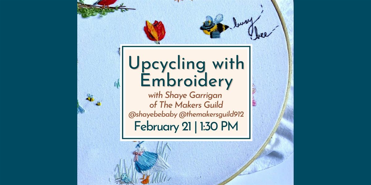 This February, give new life to old textiles! Learn how stitching can transform everyday items into personal works of art in a creative upcycling workshop led by local artist Shaye Galligan of Savannah-based studio The Markers Guild. Ideal for beginners and experienced embroidery artists, this workshop will offer guided instruction in simple embroidery techniques that can be used to refresh, repair or embellish clothing and accessories. All embroidery materials will be provided, but participants are encouraged to bring a favorite garment, tote bag or textile to work on with Shaye’s assistance.