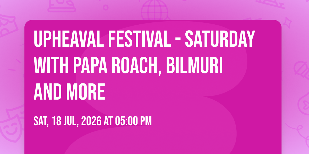 📍 Location: 42.981, -85.6658🎉 Welcome to Upheaval Festival - Saturday with Papa Roach, Bilmuri and more, where the impossible becomes possible and dreams take flight! 🏛️ Join us at Belknap Park in the heart of Grand Rapids, MI for an event that will redefine your expectations. 📅 On July 18th, 2026 at 05:00 PM, witness the transformation of space and time into something truly magical. ✨ It's a curated experience combining the best of innovation, entertainment, and community spirit, creating moments that will be remembered for years to come. Whether you're a first-time visitor or a seasoned enthusiast, prepare to be amazed. 🎊 Book now to ensure your place in this unforgettable experience!