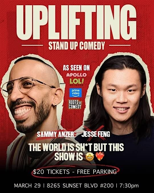 Join us for a night of UPLIFTING COMEDY with headliner Sammy Anzer (Kevin Hart’s LOL Network, PBS Roots of Comedy, Apollo Theater) and hosted by Jesse Feng (Amazon Prime). The world is sh*t right now, but trust us - this show won’t be. Turn off the news and prepare for an hour of laughter and positivity to conquer the Sunday Scaries.