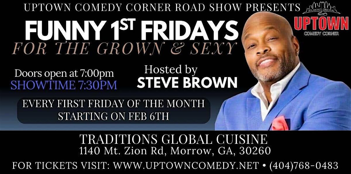 Welcome to Uptown Comedy Corner Presents: The All New Monthly Comedy Show, Funny First Fridays for the Grown &Sexy, Hosted by Steve Brown