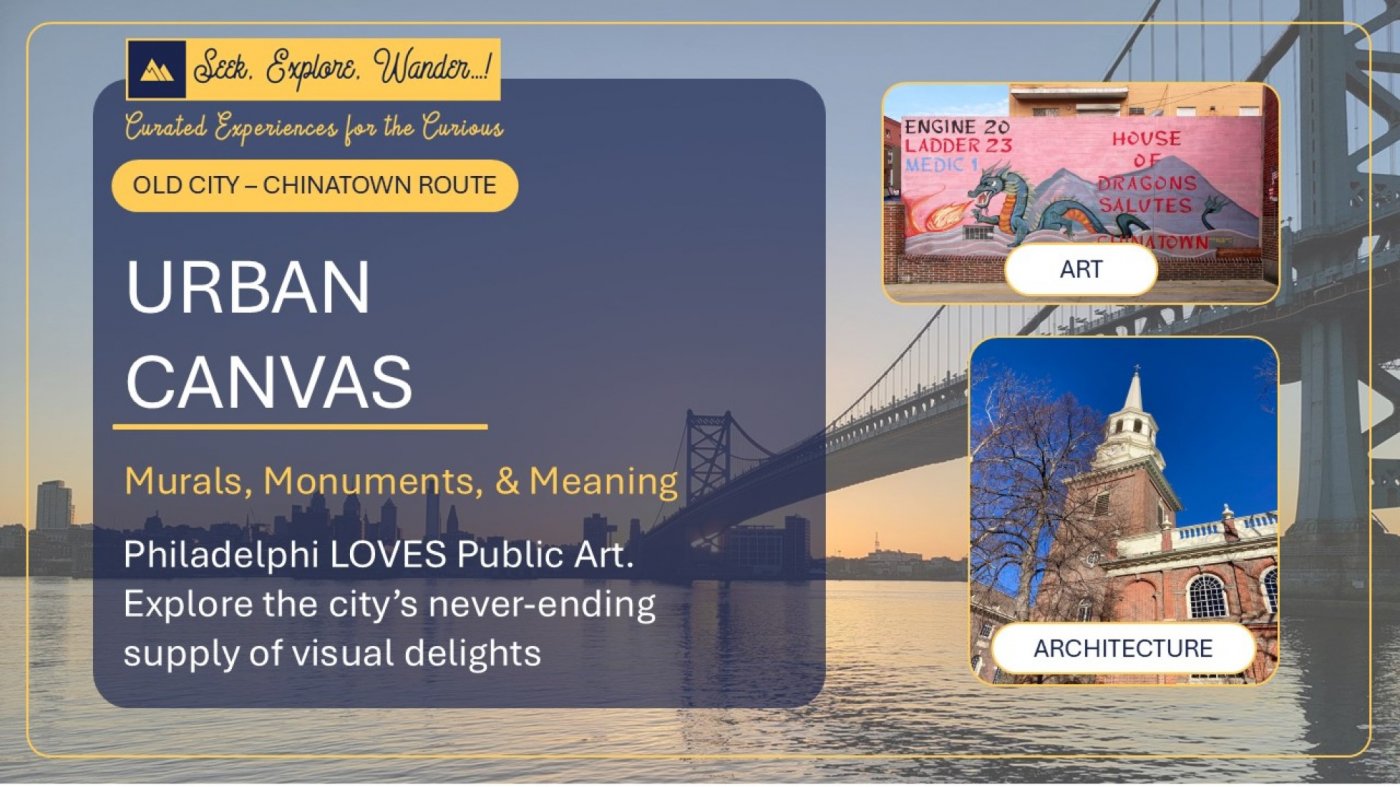 - Join us on a professionally led walking tour through Old City, Chinatown, and along the Market Street corridor as we uncover some of Philadelphia’s finest murals, sculptures, monuments, and architectural treasures. Along the way, you’ll learn not just what you’re looking at, but why it matters—how these works connect to the history of the city, the nation, and the people who shaped both. Some stops are beautiful. Some are strange. Some are hidden in plain sight. All of them help tell the story of a city that refuses to be dull.