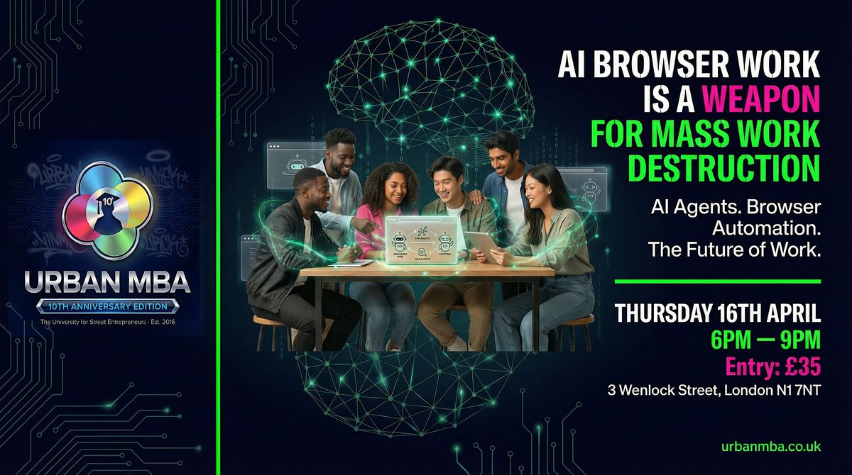 This is the second session of Urban MBA AI Club, and we are going deeper. Google AI expert and AI agents specialist Mahdi joins Urban MBA founder Kofi Oppong for a hands-on, no-nonsense evening where you will leave knowing exactly how to weaponise AI browser tools in your business.