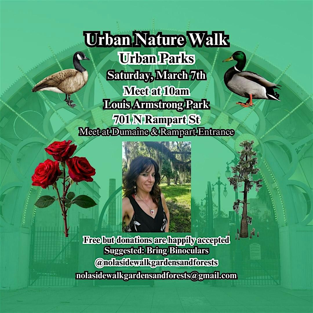 Join Helen Sierminski for an Urban Nature Walk through one of our greatest Urban Parks, Louis Armstrong Park. This historic location is a wonderful example of a curated nature space in the urban environment. These spaces are vital for maintaining healthy ecosystems, most notably serving as an oasis for migratory birds. We will explore this space, noticing and appreciating the flora and fauna that call it home. Like most parks, this is the home to many species of wildlife and domesticated animals, including Bald Cypress and Live Oak Trees, Mallard Ducks, Canada Geese, Squirrels, Muscovy Ducks and Magnolia Trees.