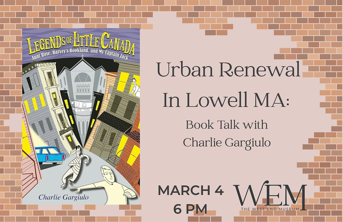 The West End Museum continues its exploration of the spectre of urban renewal with a book talk on Legends of Little Canada. In the 1960s, the French Canadian neighborhood of Little Canada in Lowell, Massachusetts was destroyed by urban renewal. Young Charlie Gargiulo witnessed this injustice and went on to a career in community organizing in favor of decent housing and a fair chance for all. In this memoir and reclamation of a neighborhood’s story, Gargiulo paints a portrait of what was lost and why it mattered.