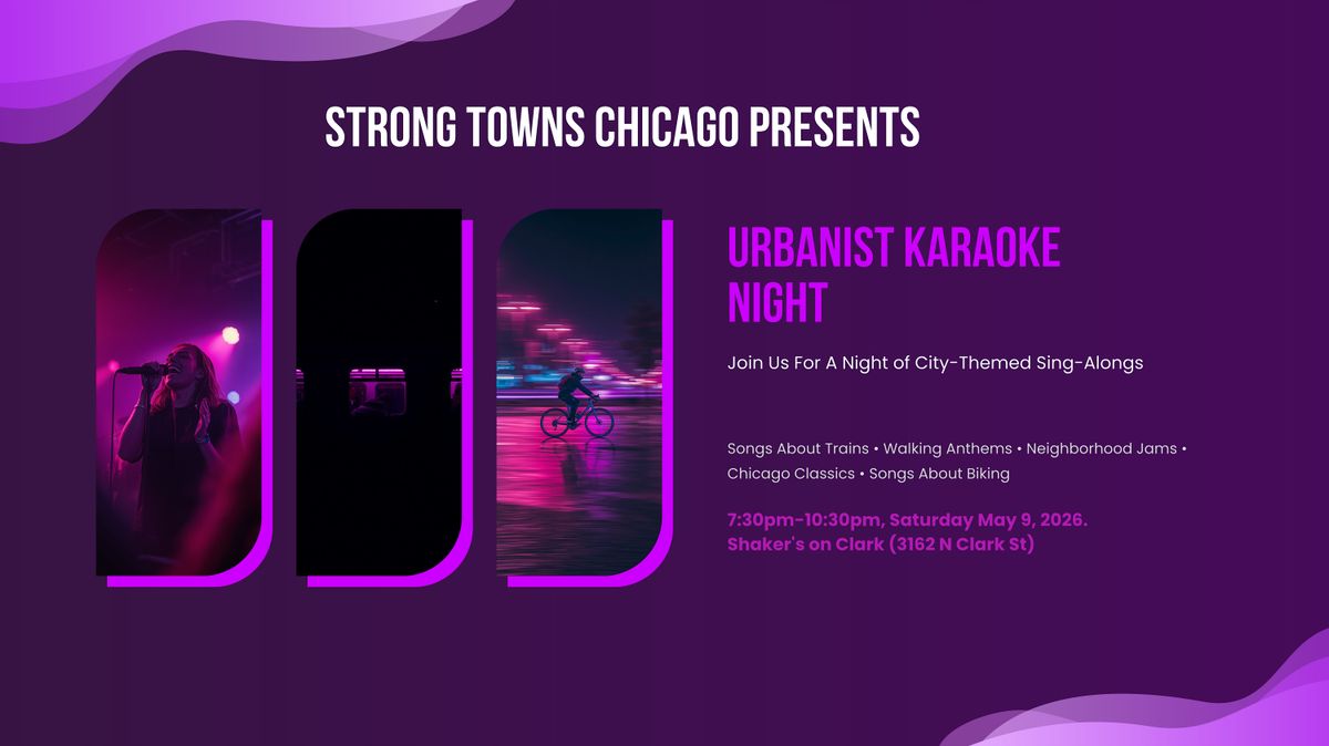 Strong Towns Chicago is hosting a karaoke night. Come sing, come listen, come hang out with people who love this city.