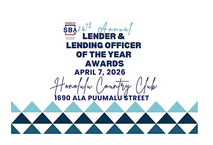 Welcome to the US SBA Lender & Lending Officer of the Year Awards event! Join us at the Honolulu Country Club for a morning of celebration and recognition. This in-person event will honor the top lenders and lending officers who have made significant contributions to small business financing. Get ready to network and celebrate on the deserving winners. Don't miss out on this special event!