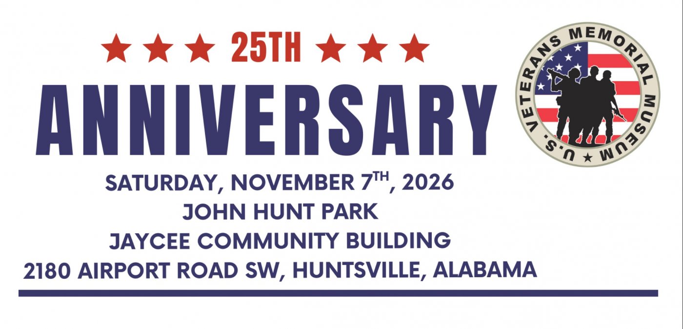 The U.S. Veterans Memorial Museum 25th Anniversary Celebration will be held on Saturday, November 7th, 2026 at 9:30am-2pm at the Jaycee Community Building, across the street from the Veterans Museum. The event will be free to attend and open to the public. The museum will be open 10am-4pm, as usual.