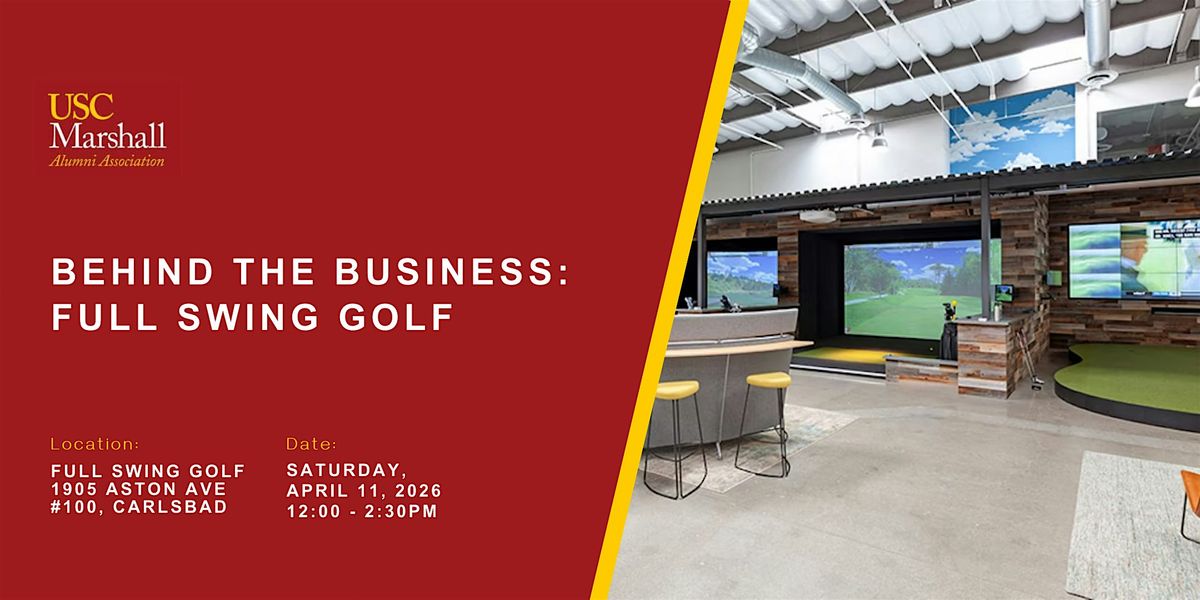 Join Marshall alumni and fellow San Diego Trojans at "Behind the Business of Full Swing Golf" where you'll learn about Full Swing Golf, the technology provider behind PGL Golf.