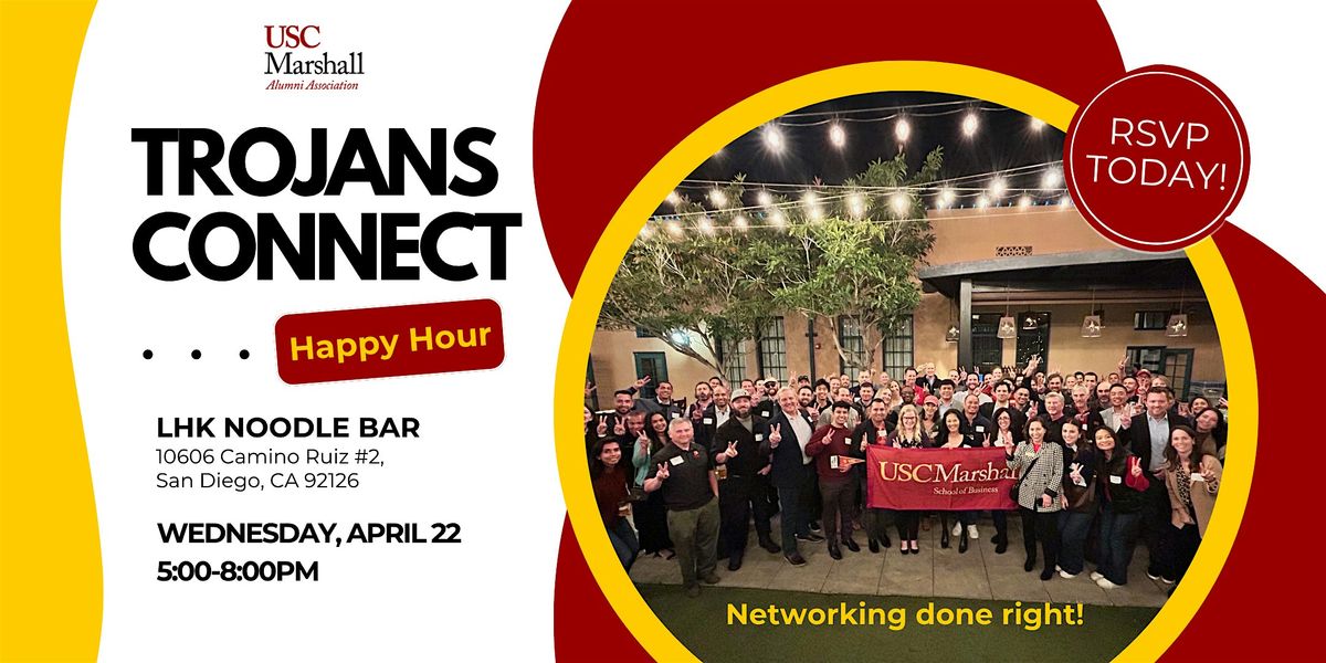 USC Marshall Alumni SD Trojans Connect Happy Hour \u2013 LHK Noodle House - 4\/22 Networking done right. Help build a stronger Trojan community in San Diego focused on genuine connections, knowledge sharing and giving back