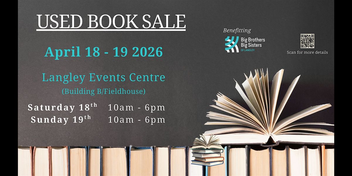 Join us for the Big Brothers Big Sisters of Langley Book Sale, a two-day community fundraiser taking place April 18–19 at the Langley Events Centre (Building B). This family-friendly event features thousands of gently used books for all ages, including children’s books, novels, non-fiction, cookbooks, and more; all at affordable prices. Every book purchased directly supports Big Brothers Big Sisters mentoring programs, helping local children and youth build confidence, resilience, and strong relationships with caring adult mentors. Whether you’re a book lover, a parent, a teacher, or a bargain hunter, your support helps create brighter futures for young people in our community. Come shop, share, and support a great cause!