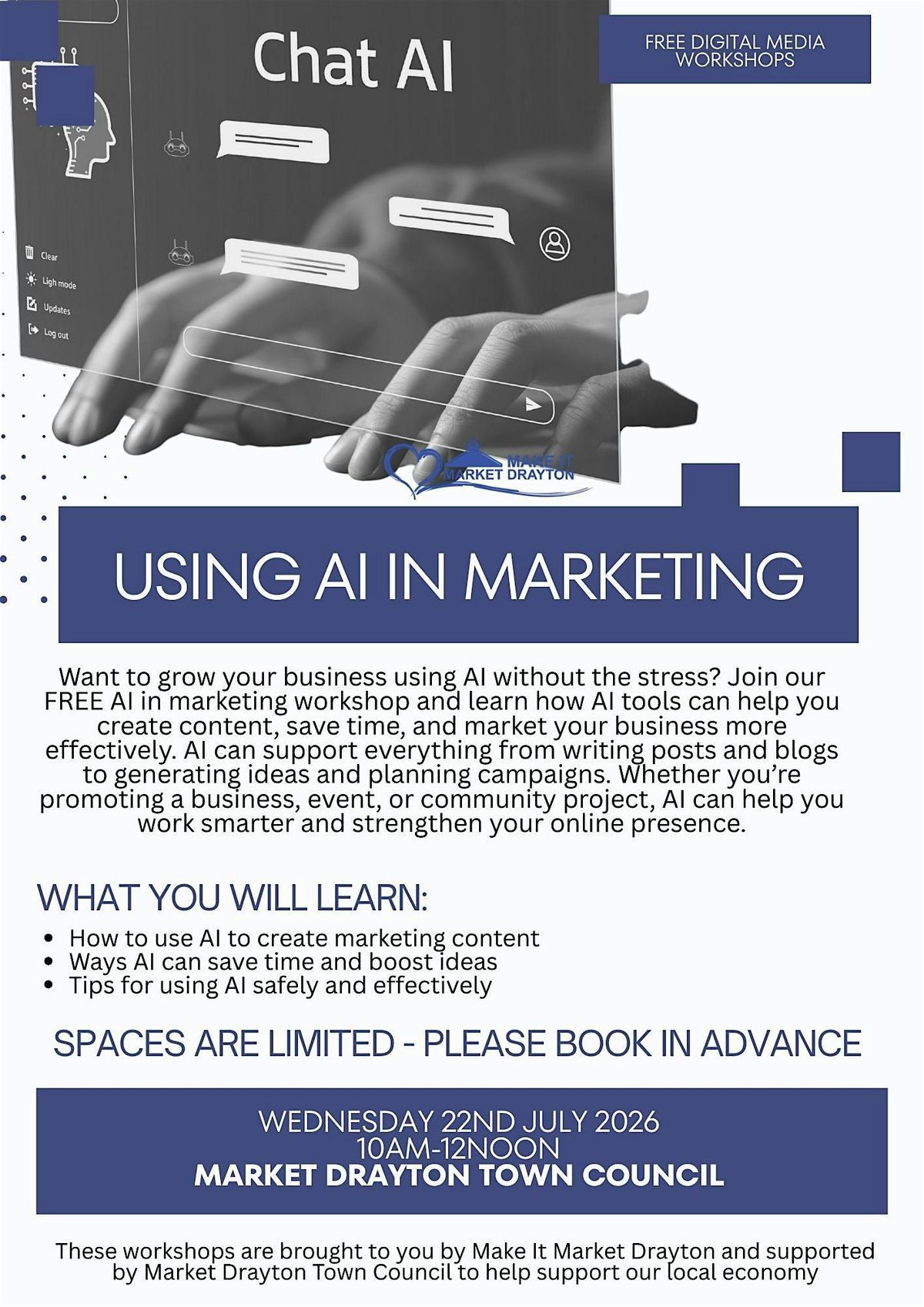 Want to grow your business using AI without the stress? Join our FREE AI in marketing workshop and learn how AI tools can help you create content, save time, and market your business more effectively. AI can support everything from writing posts and blogs to generating ideas and planning campaigns. Whether you’re promoting a business, event, or community project, AI can help you work smarter and strengthen your online presence.