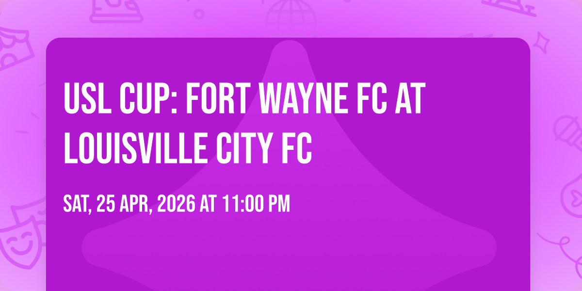 📍 Location: 38.2596, -85.7333🌟 Journey into wonder at USL Cup: Fort Wayne FC at Louisville City FC, where extraordinary experiences await around every corner! 🏛️ Set against the backdrop of Lynn Family Stadium in dynamic Louisville, KY, this event promises to exceed all expectations. 📅 Join us on April 25th, 2026 at 11:00 PM for a celebration that combines innovation, entertainment, and community spirit in perfect harmony. ✨ There will be an atmosphere where memories are made and stories come alive, ensuring every guest experiences something truly remarkable. 🎊 This is more than just an event; it's a journey into the extraordinary!