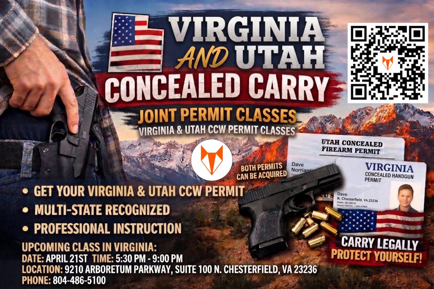 This comprehensive, three and half hour, classroom-only course is officially approved by the Utah Bureau of Criminal Identification (BCI) and is taught right here at HPi Certified Training Academy by a Utah-Certified Instructor. Whether you travel frequently for work, vacation across state borders, or simply want to maximize your legal carry footprint, this class is the perfect addition to your Virginia Resident Concealed Handgun Permit.