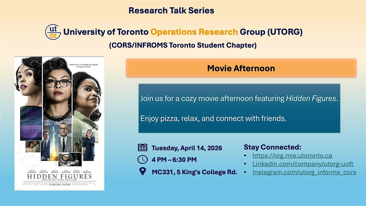 Take a well-deserved break and join the University of Toronto Operations Research Group (UTORG) for our upcoming Movie Social!