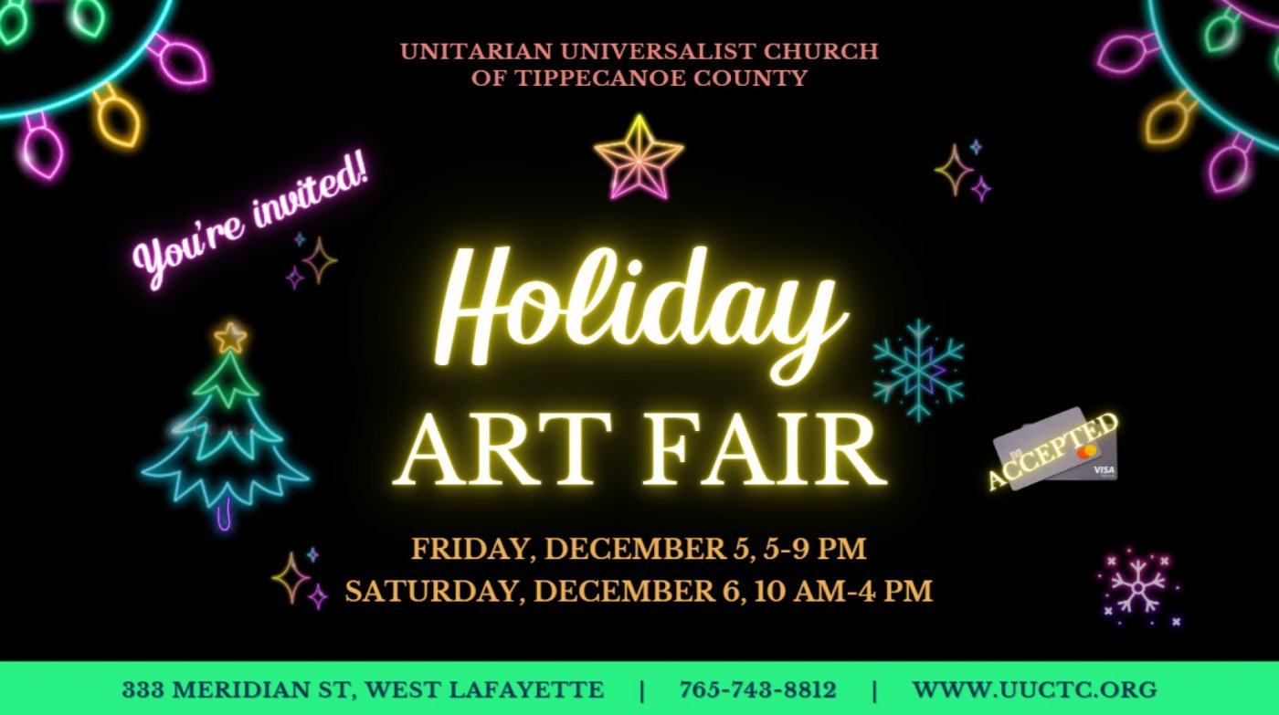 Hope to see you at UUCTC (333 Meridian Street, West Lafayette) on Friday, December 5 from 5-9pm and Saturday, December 6 from 10 am - 4 pm!