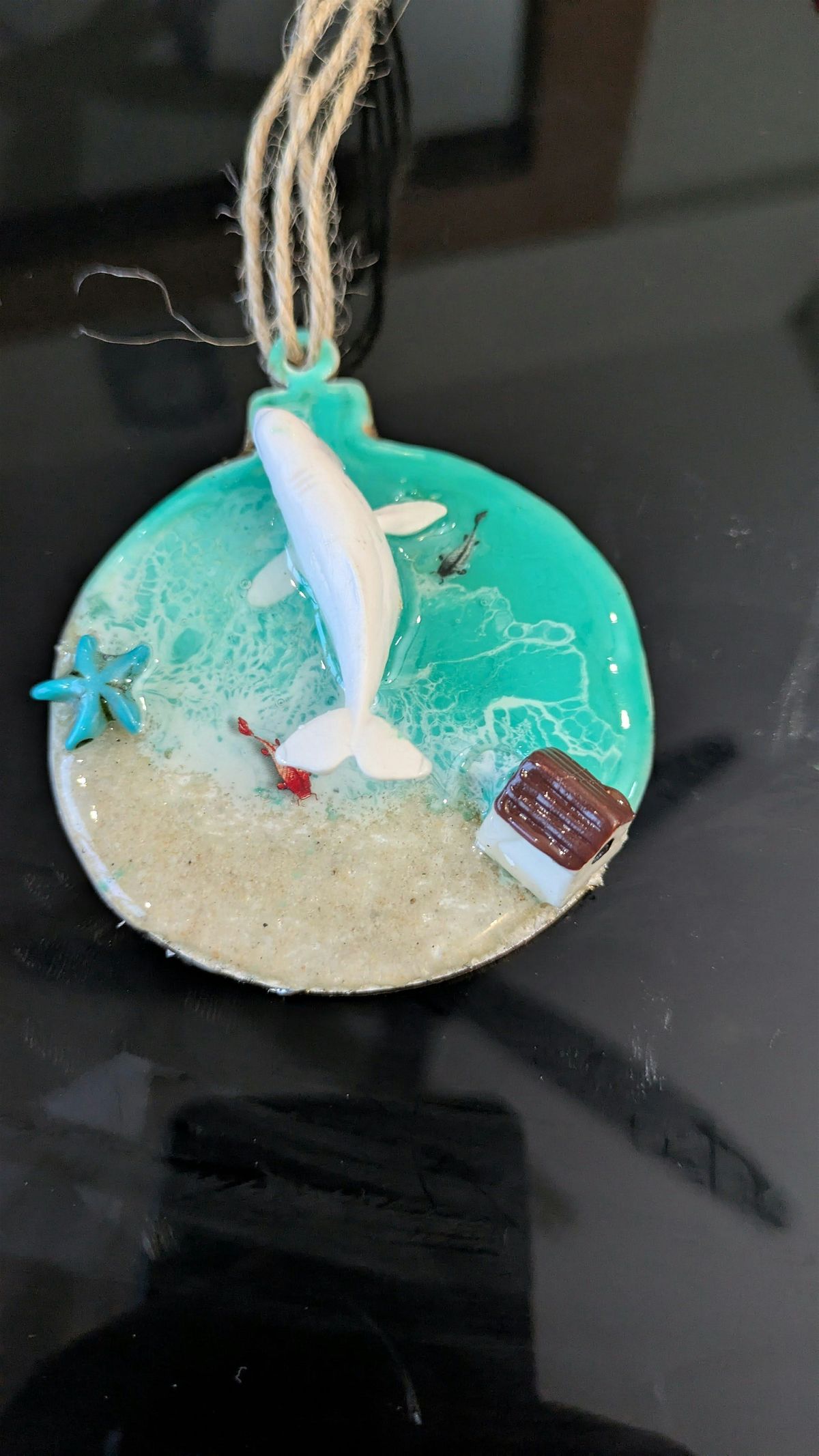 These ornaments are made with UV resin, so they cure instantly and can be taken home right after the session.