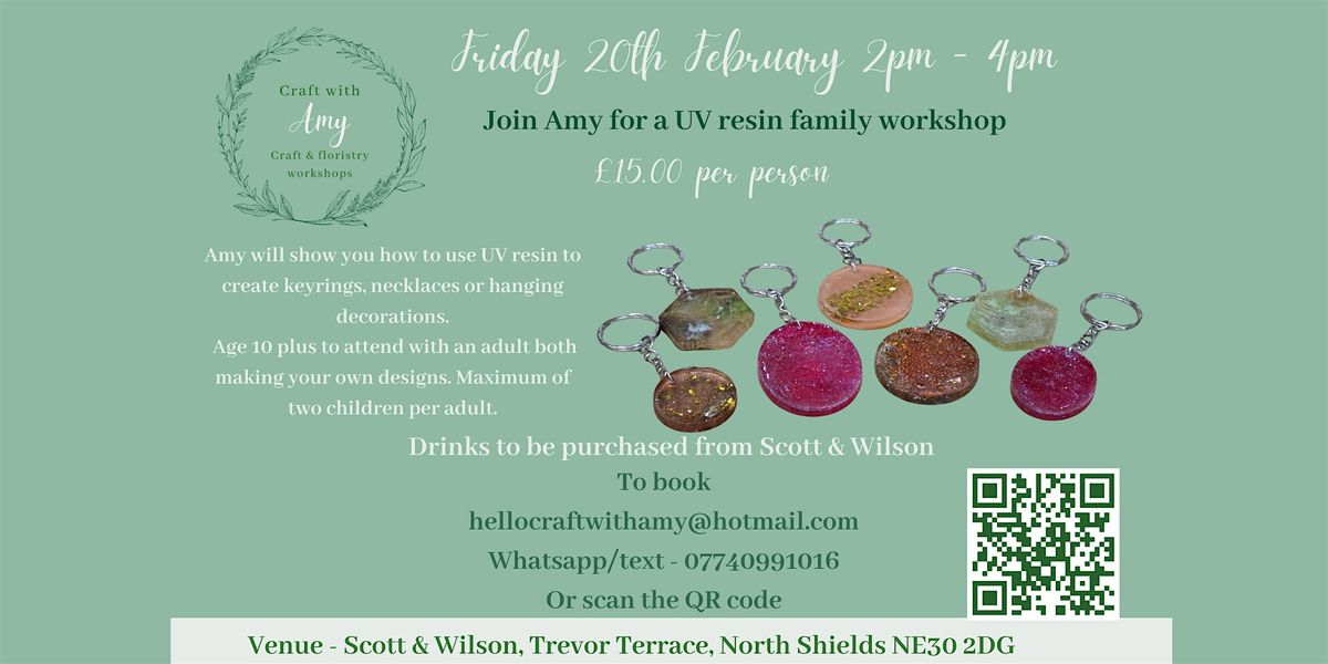 Join Amy for a UV resin session for Children age 10 plus to attend with an adult, (max two children per adult), you will be shown how to use UV resin, with coloured pigments, additional decorations and the 'bubble' technique to create keyrings, necklaces or hanging decorations. This is a chance for you are your tween/teens to have time getting creative together while making your own items.