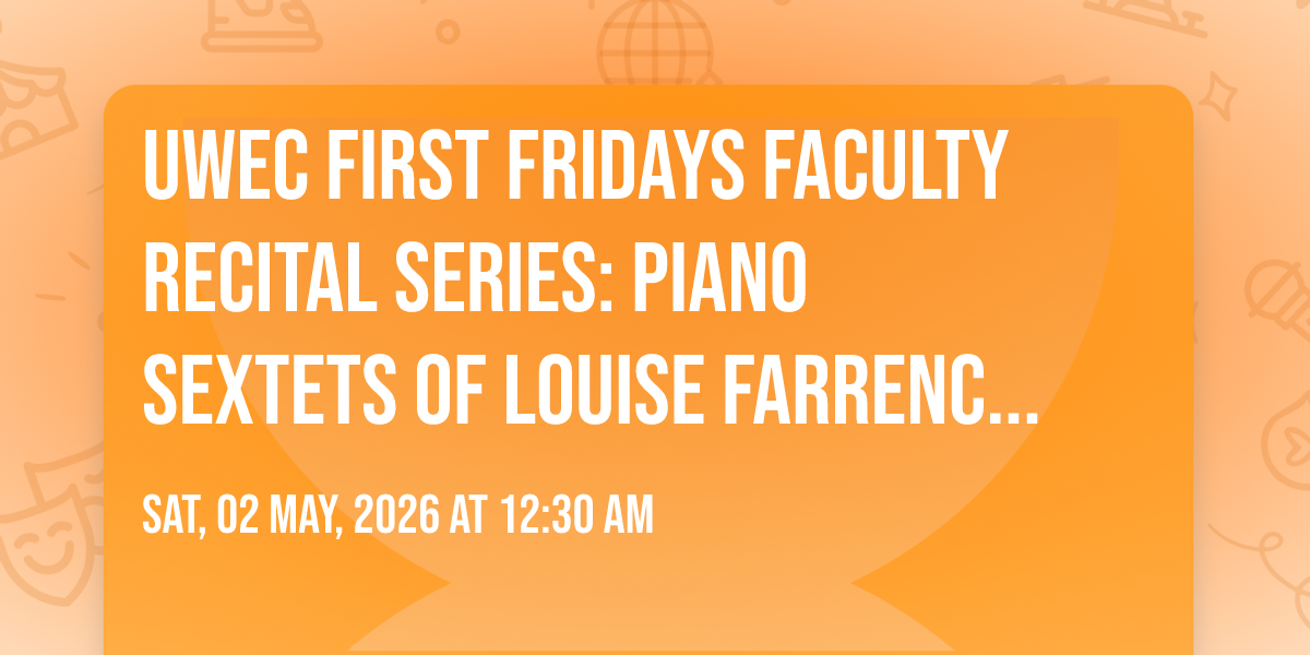 📍 Location: 44.811348, -91.4985✨ Experience the magic of UWEC First Fridays Faculty Recital Series: Piano Sextets of Louise Farrenc & Francis Poulenc, where moments become memories that last a lifetime! 🏛️ The iconic Market & Johnson Clearwater Recital Hall - Pablo Center at the Conflue in Eau Claire, WI sets the perfect stage for an unforgettable celebration on May 2nd, 2026 at 12:30 AM. 🌟 It's been a curated experience that brings together the best of entertainment and innovation, creating an atmosphere of wonder and excitement. From the moment you arrive, you'll be immersed in a world where the ordinary transforms into the extraordinary. 🎊 Book early to secure your place in what promises to be an event that will be talked about for years to come!