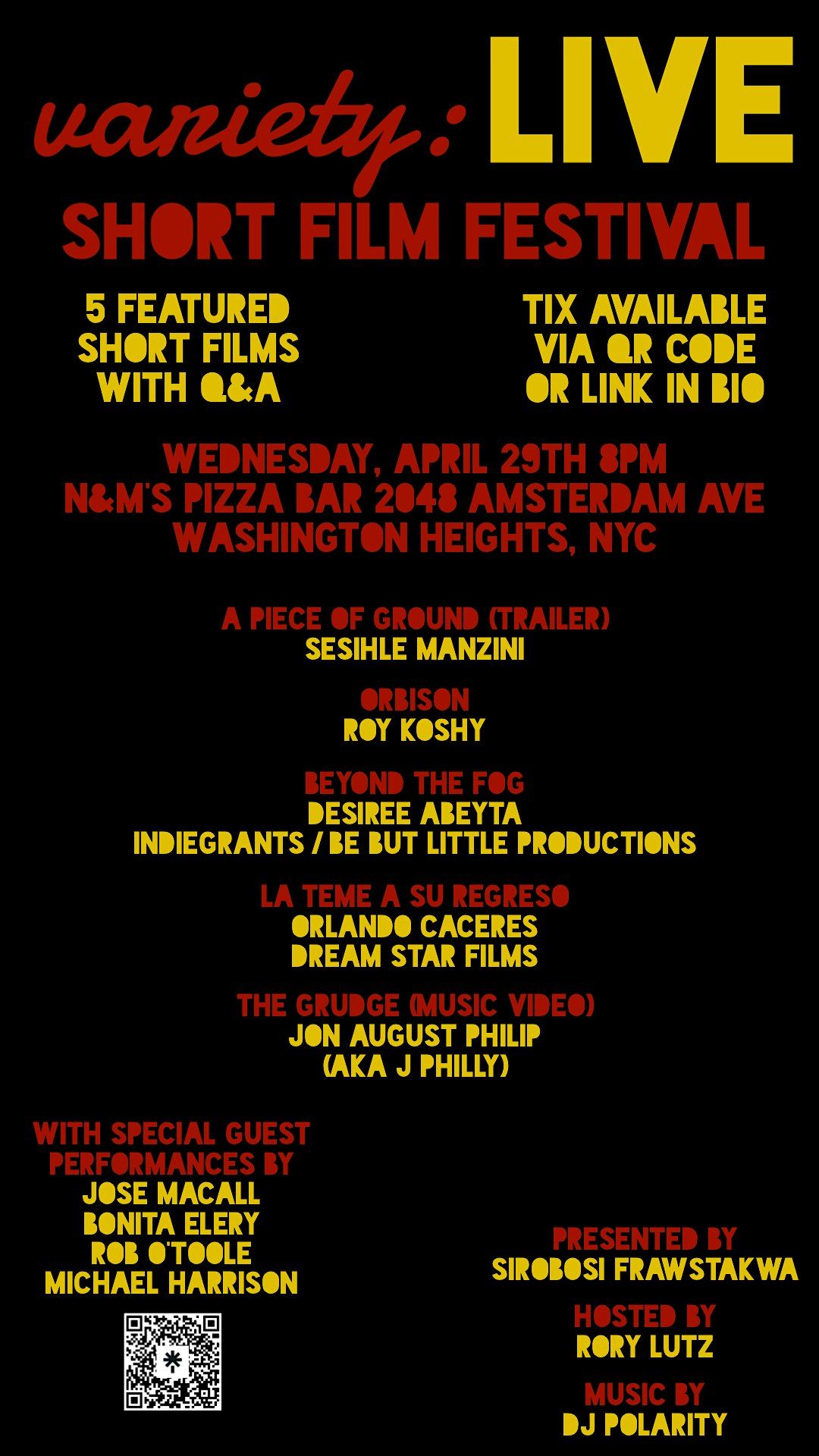 v:LSFF (variety: LIVE Short Film Festival) at N&M’s Pizza Bar 4/29/26…